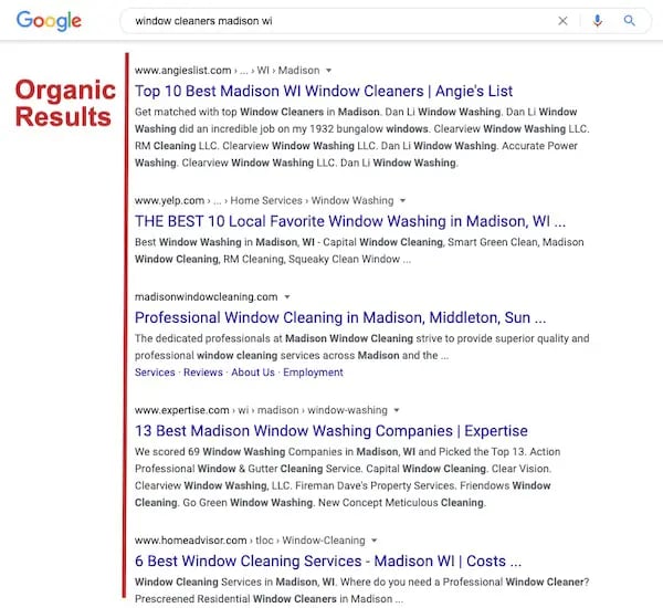 Unlike PPC ads, organic search engine results are ranked according to Google’s algorithms based on many different factors. In a nutshell, organic results are sorted by their potential usefulness to the searcher based on what they typed into the search bar.